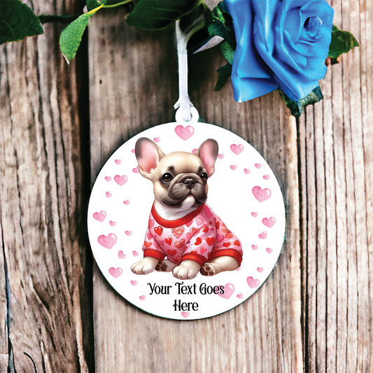 Personalised French Bulldog Pink Heart Hoodie Decoration