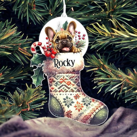 Personalised French Bulldog Pet Dog Christmas Stocking Bauble