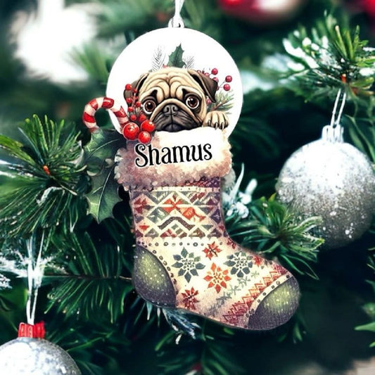 Personalised Pug Pet Dog Christmas Stocking Bauble