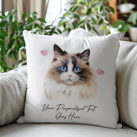 Personalised Ragdoll Cat Love Hearts - Cushion Cover Gift