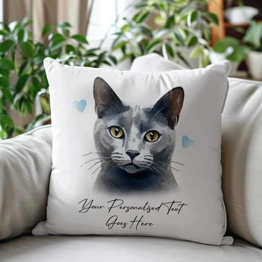 Personalised Russian Blue Cat Love Hearts - Cushion Cover Gift