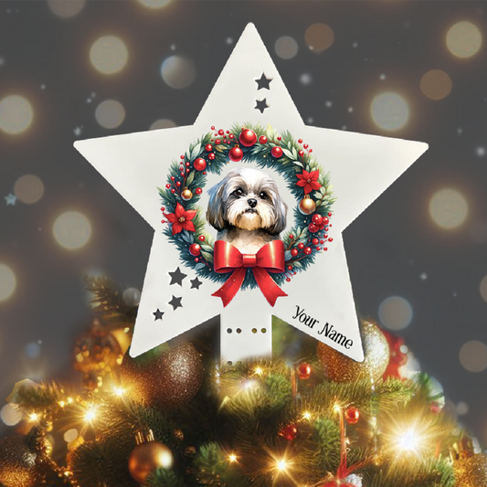Personalised Schnauzer Wreath Christmas Dog Star Tree Topper