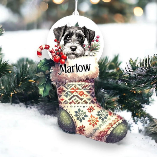 Personalised Schnauzer Pet Dog Christmas Stocking Bauble