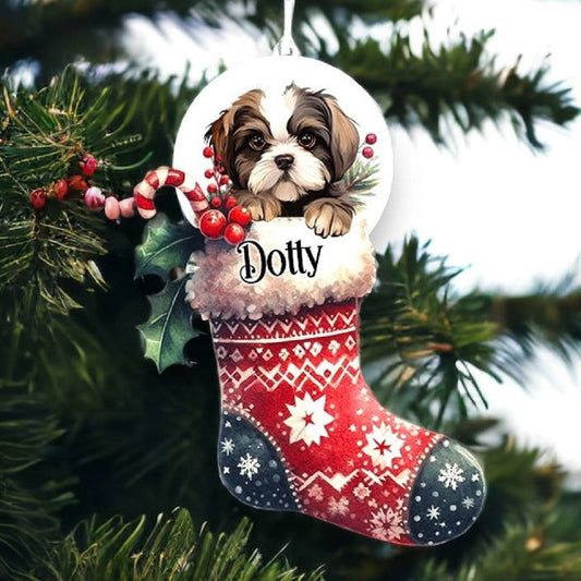 Personalised Shih Tzu Pet Dog Christmas Stocking Bauble