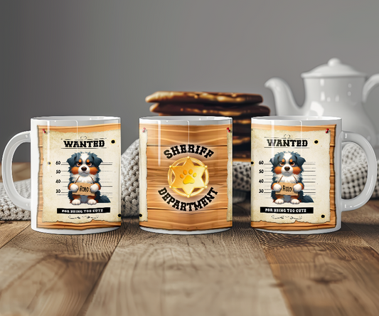 Personalised Australian Shepherd on WANTED Dog Gift Mug