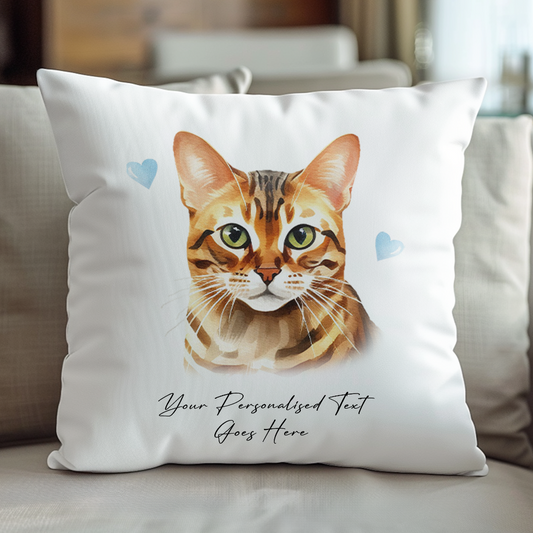 Personalised Bengal Cat Love Hearts - Cushion Cover Gift