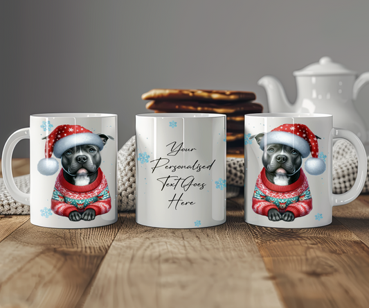 Personalised Blue Staffordshire Bull Terrier - Dog Christmas Jumper Gift Mug