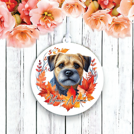Personalised Border Terrier Autumn Dog Wreath Hanging Decoration