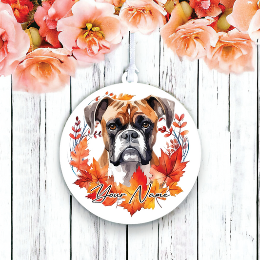 Personalised Boston Terrier Autumn Dog Wreath Hanging Decoration