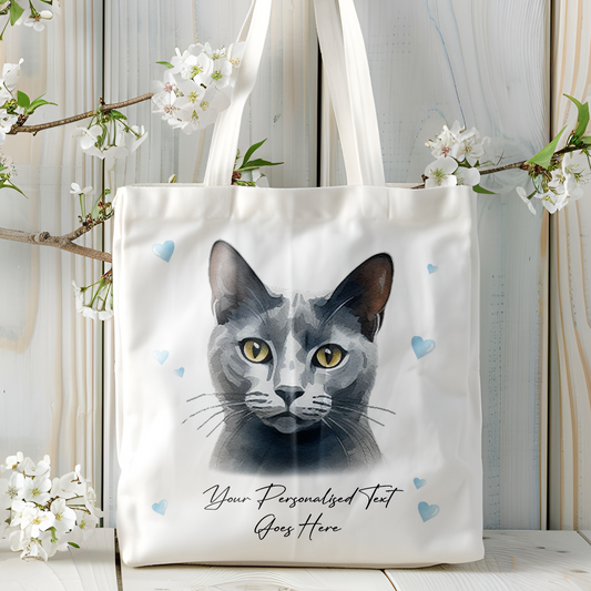 Personalised Cat Love Hearts Russian Blue Tote Bag