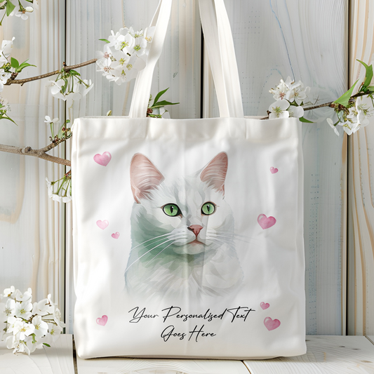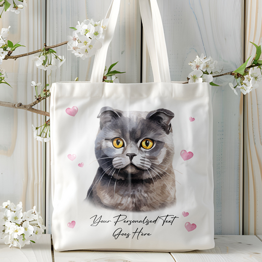 Personalised Cat Love Hearts Scottish Fold Tote Bag