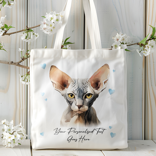 Personalised Cat Love Hearts Sphynx Tote Bag