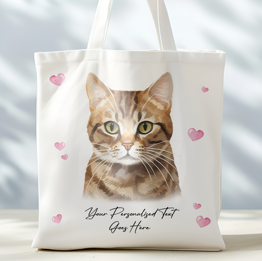 Personalised Cat Love Hearts Tabby Bramble Tote Bag