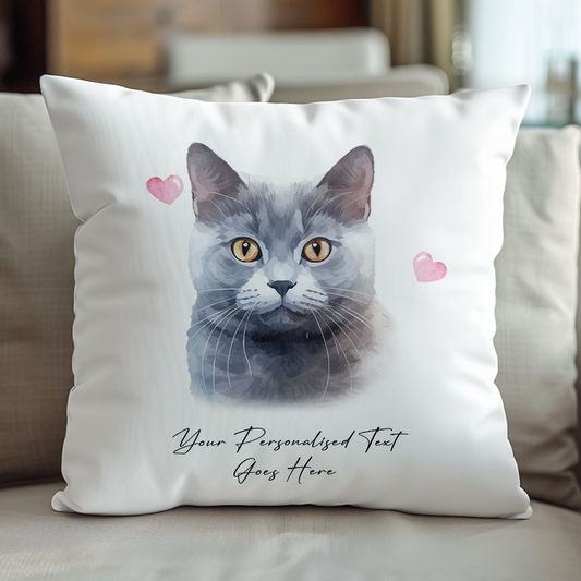 Personalised Chartreux Cat Love Hearts - Cushion Cover Gift