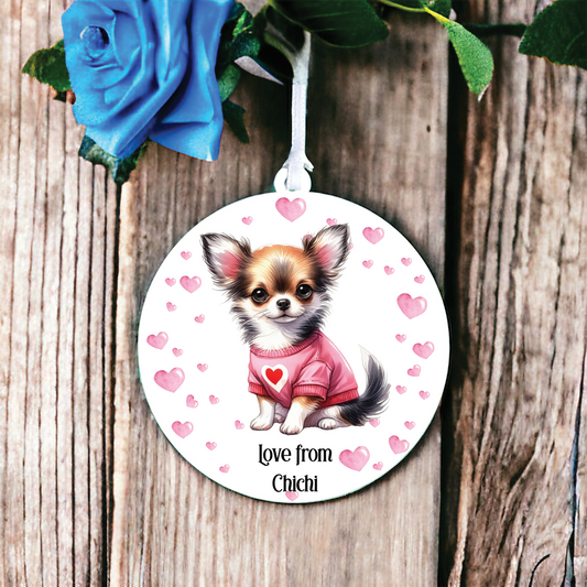 Personalised Chihuahua Pink Heart Hoodie Decoration