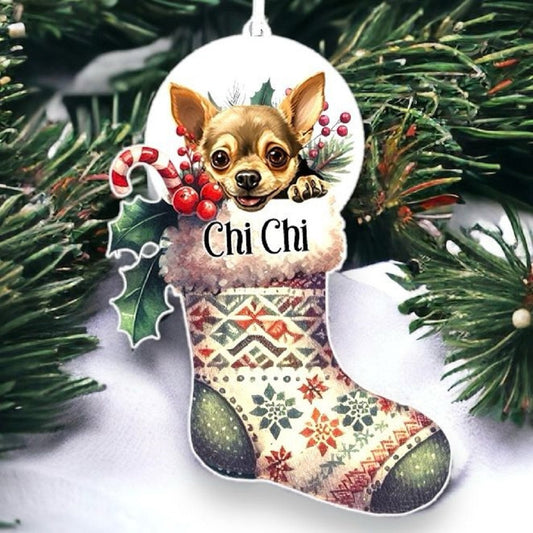 Personalised Chihuahua Pet Dog Christmas Stocking Bauble