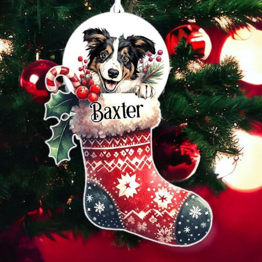 Personalised Collie Pet Dog Christmas Stocking Bauble
