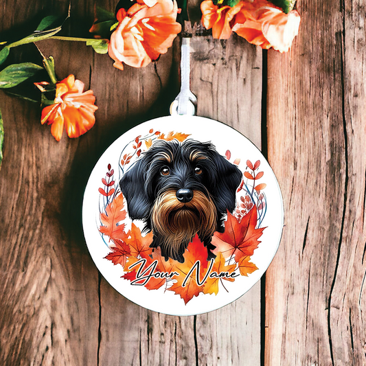 Personalised Dappled Silver Dachshund Autumn Dog Wreath Hanging DecorationRegular price £8.50 GBPRegular priceUnit price / per-