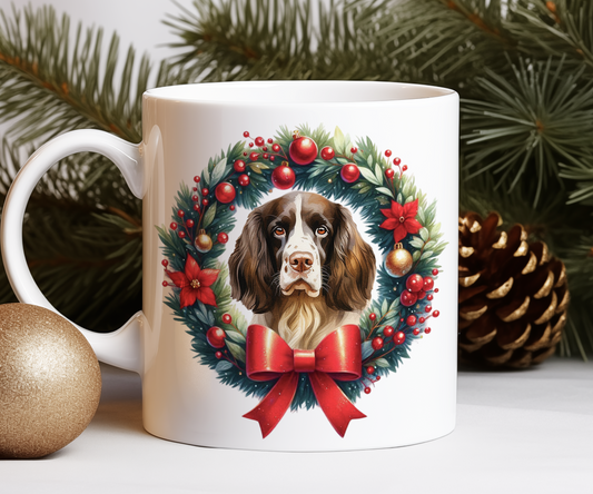 Personalised English Springer Spaniel Dog Christmas Wreath Gift Mug