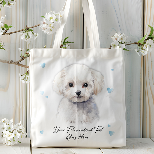 Personalised Dog Love Hearts Bichon Frise Tote Bag