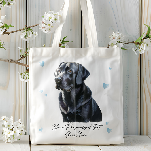 Personalised Dog Love Hearts Black Labrador Tote Bag