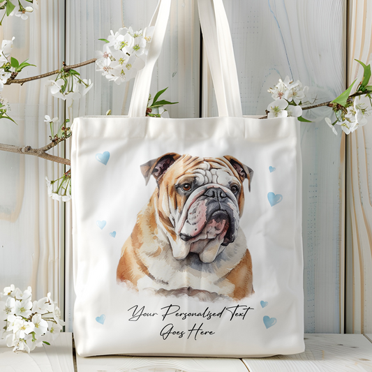 Personalised Dog Love Hearts Bulldog Tote Bag