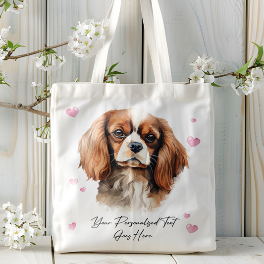 Personalised Dog Love Hearts Cavalier King Charles Spaniel Tote Bag