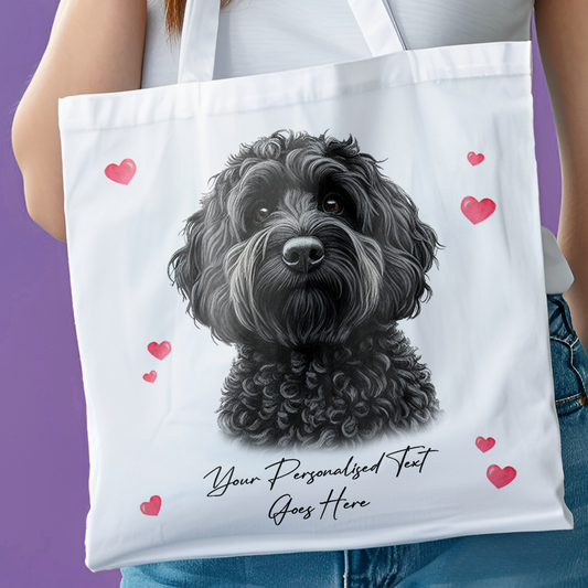 Personalised Dog Love Hearts Black Cockapoo Tote Bag