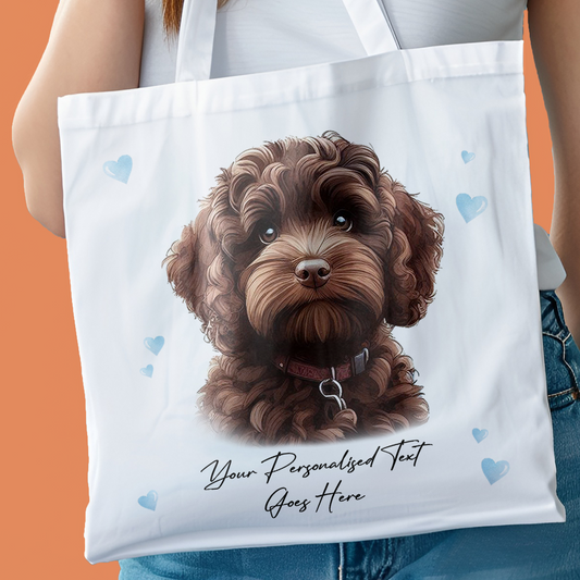 Personalised Dog Love Hearts Chocolate Cockapoo Tote Bag