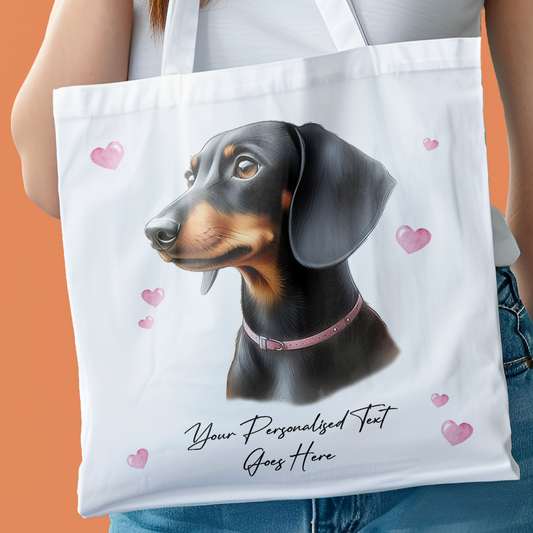 Personalised Dog Love Hearts Black and Tan Dachshund Tote Bag