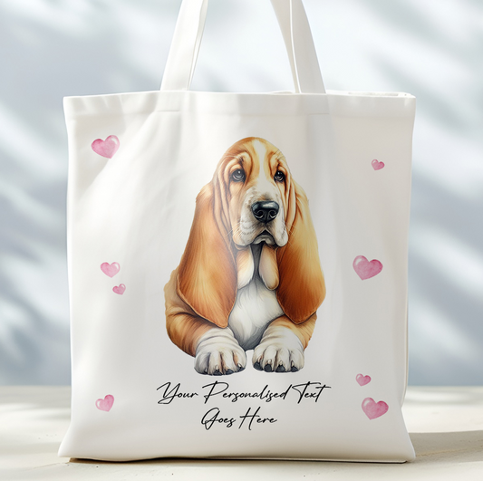 Personalised Dog Love Hearts Basset Hound Tote Bag