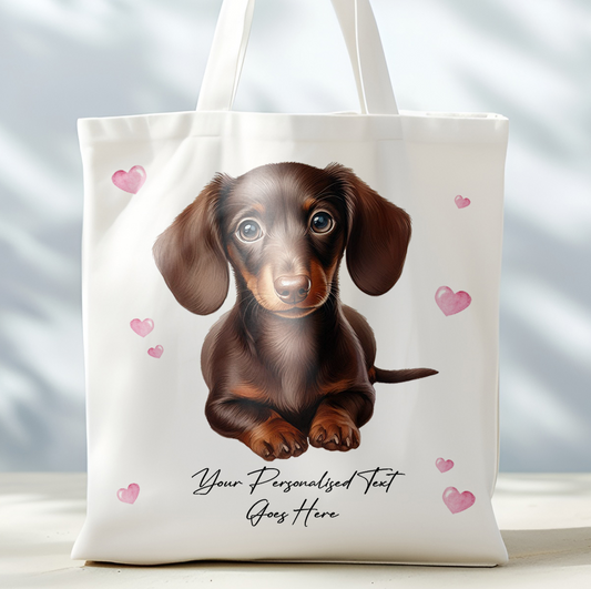 Personalised Dog Love Hearts Chocolate Dachshund Tote Bag