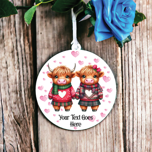 Personalised Cute Highland Cow Love Heart Hand Decoration