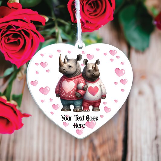 Personalised Rhino Couple Love Animal Decoration